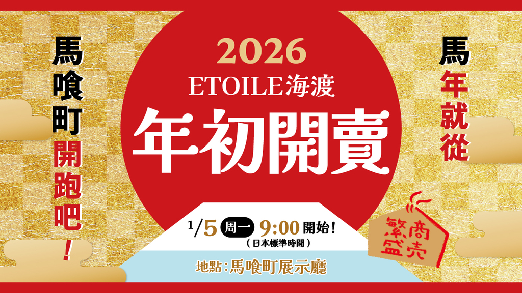 ▶1月營業通知 【冬季公休期間】 提醒您,以下期間為冬季公休期間。 2025年12月30日(週二)~2026年1月4日(週日) ■ 公休日 此為馬喰町展示廳公休日。 ETONET可照常使用。 無法在取貨中心取貨。 出貨日 可於ETONET指定出貨日。 訂購截止時間請參照ETONET。 【關於年末年初的訂單截止時間】 因日本年末年初假期,今年內交付商品的訂單截止時間將依照下述時間。 ・選擇至取貨中心取貨 12/26(週五)中午12:00(日本時間) ・選擇發送 12/27(週六)中午12:00(日本時間) ▶2026年初開賣將於1/5(週一)舉辦! 在馬喰町展示廳,我們準備了豐富商品與有趣活動,與各位一同熱鬧迎新春。 ▶介紹1月份的企劃。 Spring Flower 以春天花卉為主題的雜貨,讓賣場明亮華麗。搭配花語,更能成為傳達心意的禮品。我們匯集了以粉紅、黃色等明亮色彩為基調,呈現春意盎然的商品。 巧克力加碼!白色情人節禮品 據說約七成男性會在白色情人節回禮。近年來,依對象與場合選擇禮品成為主流。從職場小禮如點心、紅茶,到送給家人的高級化妝品與放鬆用品,應有盡有。以粉紅、水藍等柔和色彩為主,讓人一見心情愉悅的商品齊聚一堂。 溫暖×春色 層次穿搭 即使在一、二月的嚴寒,也要搶先感受春意! 厚外套保暖,再搭配春色系單品,打造兼具溫暖與春意的造型。 以輕盈色彩與優美剪裁,為新年開啟嶄新的自己。 百搭優秀上衣 耐穿又百搭的上衣,是令人愛不釋手的定番單品。從Logo款、套裝針織、運動衫、長袖T恤、背心等,提供全年皆宜的顏色、材質與版型。新款令人心動,冬季優惠更超值,選擇多樣,推薦給您最可靠的“優秀上衣”。 成熟可愛風衣櫥 令人心動的自我獎勵服 為日常增添色彩的“自我獎勵服”。 讓寒冷日子也能心情愉快的單品、結合新款與冬季單品,展現新季節氣息。用於情人節穿搭也相當推薦! ▶冬季乾燥對策!可護膚護髮——椿油「結い椿」 ETOILE海渡原創「結い椿」採用利島產100%椿油。 含有約86%接近肌膚成分的油酸,並富含促進肌膚再生的棕櫚酸及具高抗氧化力的硬脂酸。 於利島玄武岩孕育的肥沃土壤培育,從江戶時代傳承至今的特別椿種子中採取製油。 本次將為您介紹樁油的各種用法,如臉部與身體乾燥護理、預防頭髮毛躁及靜電等。 活動期間中,「結い椿」系列所有商品皆可當天購買直接帶走,並且1/5(週一)~7(週三)會有5%OFF的折扣優惠。請把握機會! ■活動時間 1/5(週一)~預定2月下旬 ■活動地點 1樓 Park前